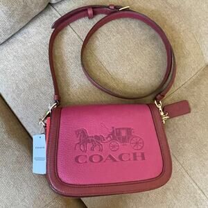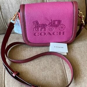 Coach Crossbody bag Leather Maroon Pink Carriage Embossed Logo Sophisticated