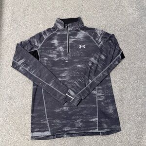 Under Armour long-sleeve top with a quarter-zip design. Charcoal with light gray accents. Ideal for active wear.