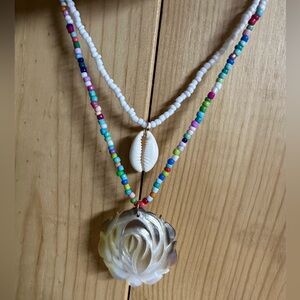 Free People layered puka Shell multi color Seed Bead Beachy Necklace