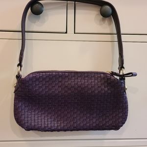 Elliott Lucca Dark Plum Purple and Gold Woven Leather Small Shoulder Bag Purse