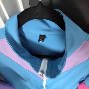 Dive into style with this vibrant blue and pink swim set. Perfect for a day at the beach or an 80s theme party.