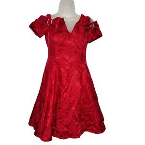 Vintage Gunne Sax Red Brocade Off Shoulder Bow Dress Sz 9/10 Prom Hoco Pageant