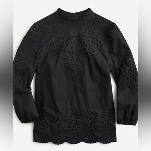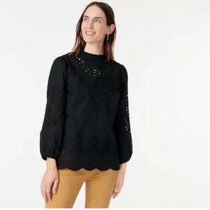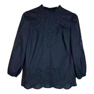 J. Crew Mock Neck Cotton Poplin Embroidered Top Eyelet Lace size Large