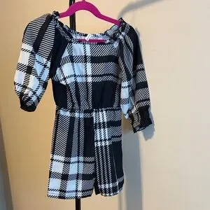 SHEIN Black and White Plaid Kids Romper