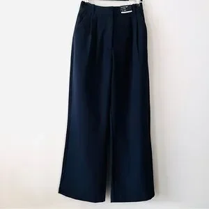Abercrombie & Fitch Sloane Tailored Pants | Ultra High Rise Wide Leg | Navy 2S