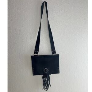Black Leather Fringe Envelope Style Slim Shoulder Bag Boho Western Country Cowgirl Indie Vibes