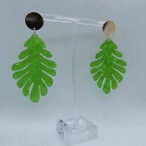 Francesca's Palm Leaf Acrylic Drop Earrings Lime Green Chunky Tropical Earrings