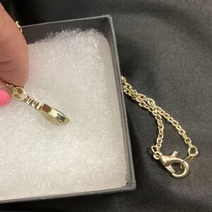 Elegant necklace featuring a gold-tone chain and a striking pendant. The pendant showcases a bezel-set, oval-cut sapphire, estimated at 2.00 carats, complemented by a line of smaller, clear crystals above it. The chain has a classic link design and is secured with a lobster clasp, complete with an extension chain for adjustable length. The back of the pendant has a textured finish, adding depth to the design.