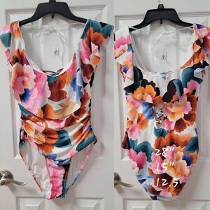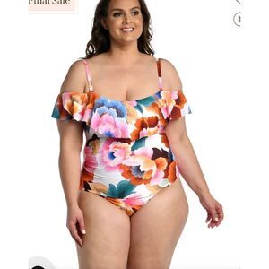 LA Blanca Floral Off Shoulder Ruffle One-Piece 12