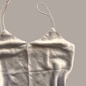 Vintage lilac purple satin cami. Feels so soft and light. Color is a very faint light purple. Scallop hem along the bottom. In good condition. So many ways to style! Labeled as a size medium, please read and compare measurements to your own carefully!