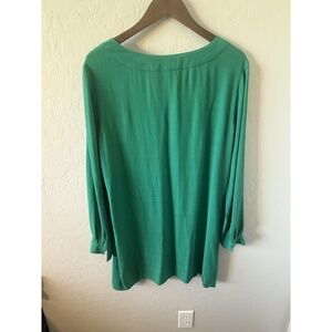 Features: Long sleeve, V-neck, Green color, Tunic style