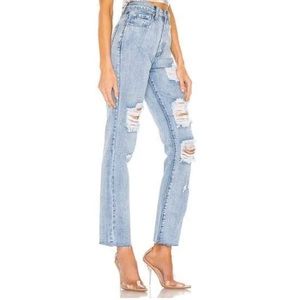 Superdown Straight Distressed Raw Hem Jeans (Size 27)