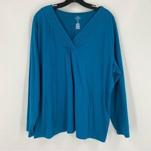 St. John’s Bay Women’s V Neck Long Sleeve Blue Teeshirt size 2X