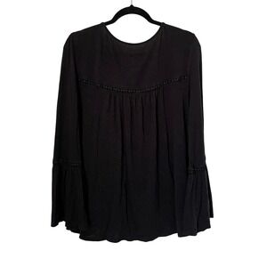 Time and Tru Women XL Black Embroidered Bell Sleeve Tie Neck Boho Long Sleeve