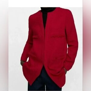 Zara Long-line Statement Red Tweed Blazer Jacket, Size M