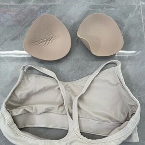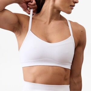 Good condition - Women’s Athleta Vital Sports Bra Low Impact Workout Removable Pads. Has removable pads. Color: white/cream. Size: M.