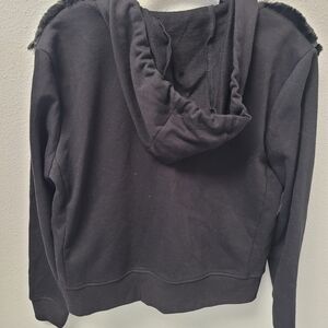 DKNY Faux Fur Hooded Black Zip Up Jacket Size Small
