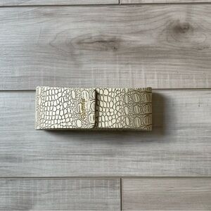 Sama Crocodile Embossed Beige Leather Eyewear Case