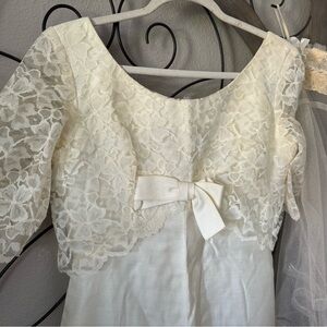 Vintage Emma Domb Wedding Dress & Veil Linen Lace Woman's 12 Union