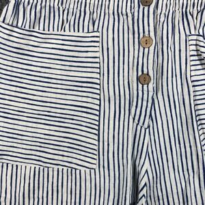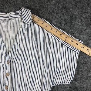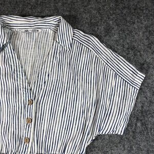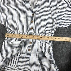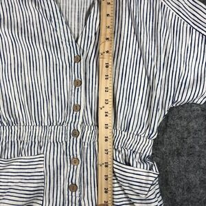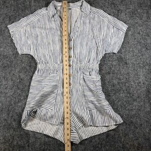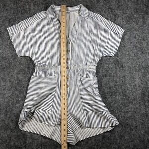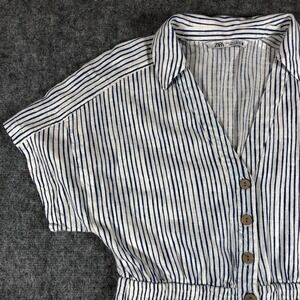 Zara Women's Romper Size Small White Blue Stripe Linen Blend Button Front