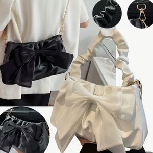 NEW: Elegant White Bow Handbag 2 handles (see pics gold colour chain & PU short)