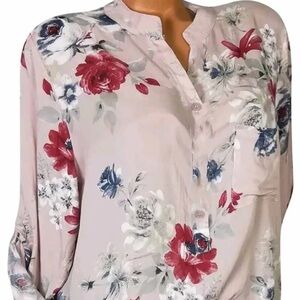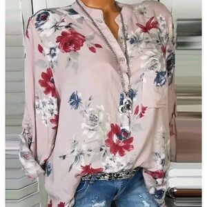 Elevate your style with this floral blouse featuring a striking red and white floral pattern, this shirt is perfect for any occasion. Enjoy comfort and style in one package.
