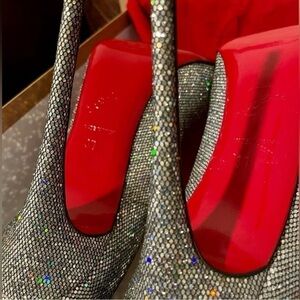 Behold the most beautiful heels mankind has ever seen. Christian Louboutin ‘So Kate’ Starburst Disco ball 120mm heels. You dare to walk in these? Ya better stretch those heel and ankle ligaments. Not only are these heels sexy, blowout drop dead gorgeous but also made for only a select few on the planet that can actually walk in them with grace. Hate to let these go. Only worn a couple times for 15min each time on carpeted floors. Nil to Minor wear through out. Has a heel protectant mirror clear soul saver coating affixed also for $100.