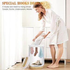 Compact and Safe - Safe to use, compact for easy storage. The towel warmer is lightweight enough to move around the home; the bucket and lid separate for quick cleaning, while the round-shaped base is stylish and attractive; operates efficiently and quietly.