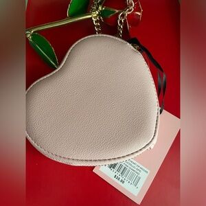Chic heart-shaped wristlet. Soft pink hue. Perfect for any occasion.
