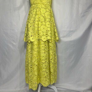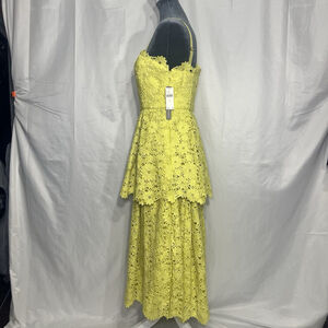 Anthropologie Maeve Tiered Lace Eyelet Dress Chartreuse Yellow Sz 8 Midi Flowy
