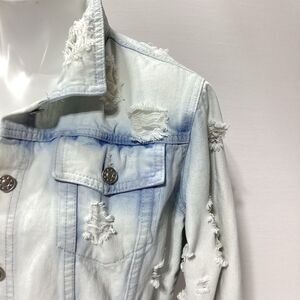 Emory Park Patch Work Rose Troublemaker Distressed Jean Denim Jacket Shacket