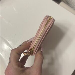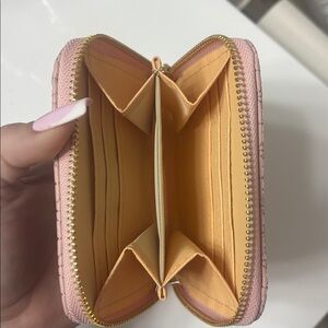 Real leather MiuMiu wallet!! Good hardware and it’s a beautiful light pink color! Has many pockets for cards and IDs very roomy for everything you need! Brand new!!