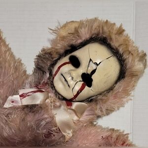 Vintage Creepy Doll Pink Teddy Bear ~ Ooak Bastet Handmade