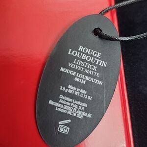 Christian Louboutin Ladies Rouge Louboutin Velvet Matte Lipstick. Designed by the world-renowned fashion house Christian Louboutin, this luxurious lipstick brings high-end beauty straight from France to your makeup collection. With a bold shade of 001m and a smooth, matte finish, this lipstick delivers rich color that stays put, perfect for making a lasting impression.
