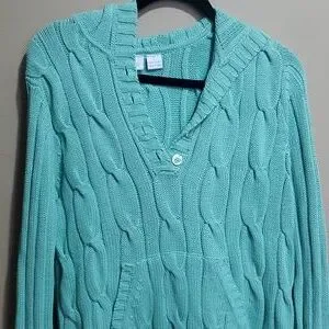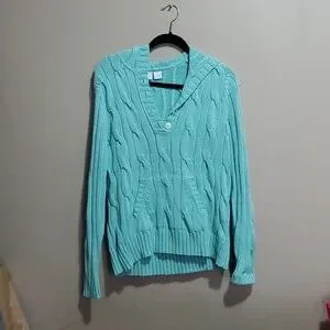 Teddi mint green hooded cable knit sweater size large