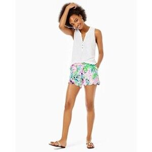 Lilly Pulitzer Essie Tank Tunic Top White Smocked Cotton Sleeveless XXS 283649