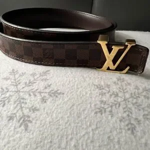 Louis Vuitton Brown Checkered Belt with Gold Logo Buckle
