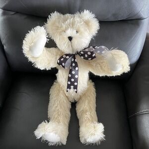 This is a vintage 18-inch Forever Friends bear made of white mohair, manufactured in 1991 and signed by the artist, Lori Nerdahl. The bear is part of the collector's series and features black eyes, being 5-way jointed for posability. It is an original piece from the Forever Friends collection, reflecting the nostalgic charm of the 1990s. This antique bear is a rare find for collectors of stuffed animals and teddy bears.