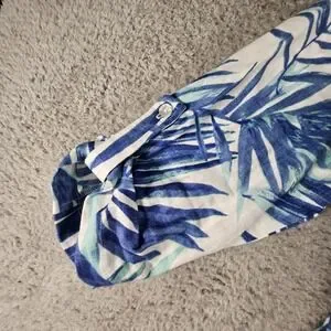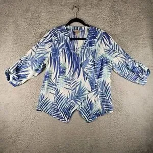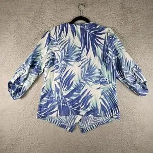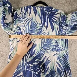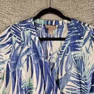 Chicos Cardigan Womens 1/M Hawaiian 100% Linen Tropical Floral Paradise Cardigan