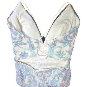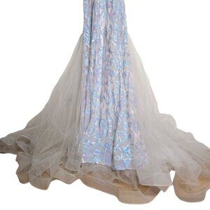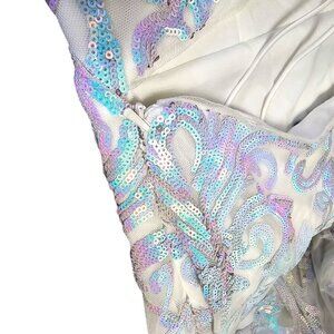 Clarisse NWT Iridescent White Sequin Mermaid Formal Ball Gown Sz 8