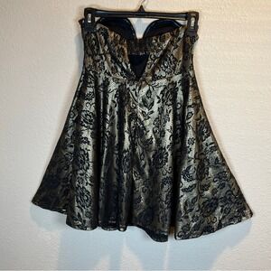 Women's Strapless LoveMarks Dress Small Black/Gold Floral Short Preowned