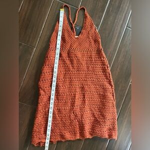 Mojave Muse Rust Orange Crochet Sleeveless Mini Dress
