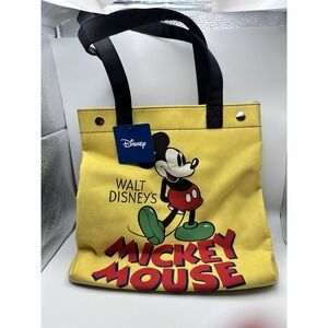Disney Mickey Mouse Yellow Nylon Tote 12"x12"x5" W/ Umbrella & Zipper Pouch NWT