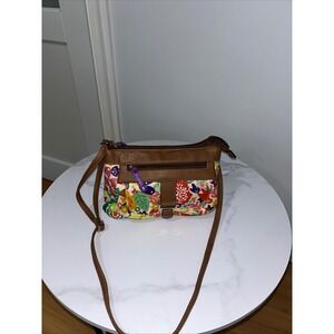 Introducing a vibrant tapestry of color, this floral crossbody bag offers an everyday escape into a garden of style. Its lightweight design and thoughtfully organized interior provide effortless functionality. The bright floral pattern dances across the exterior, each bloom a burst of joy against the neutral base. The rich brown trim adds a touch of sophistication, while the multiple zippered compartments keep essentials secure and accessible. The long, adjustable strap promises comfortable wear, adapting to your preferred length and style. Perfect for weekend markets, garden strolls, or adding a pop of color to your daily errands.