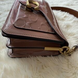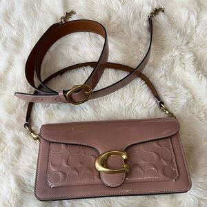 Gorgeous Coach Tabby 26 in the rare limited edition color cappuccino which is a Shimmering Pink Patent Leather with Gold hardware.