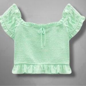 Zara Mint Green Smocked Crop Blouse with Ruffles. NWT