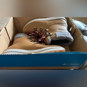 New!! Columbia warm, winter, insulated boots. Size 8. Cognac tan in color. New in box.