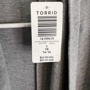 NWT Torrid Womens Open Front Jacket Asymmetrical Gray Plus Sz 1X Casual Fall