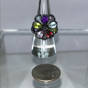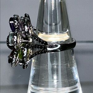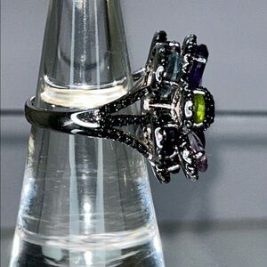 NWOT Multi Genuine Gemstone Sterling Silver Designer Floral Themed Ring Bohemian