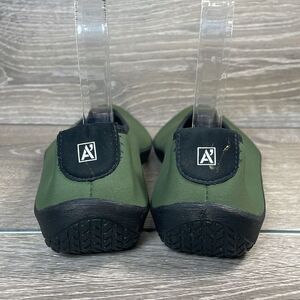 A’Rcopedico Lolita Women's Sz 6.5/EU 37 Green Stretchy Slip On Ballet Flats in excellent condition. Please see picture for distress on rear right shoe. Step into comfort with these stylish green slip-on shoes. Perfect for everyday wear. Get these today, ladies.